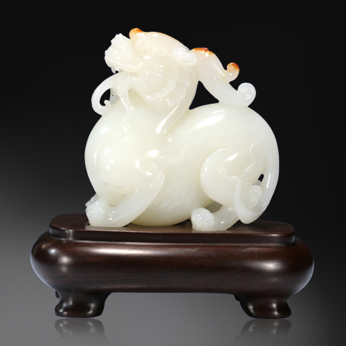 顏色潔白,質(zhì)地細膩,油潤度極佳,手感溫潤順滑,圓雕一貔貅,兩眼圓睜,口張吐舌,頭部有紅糖,色俏麗喜人,瑰艷奪目,有鴻運當頭之意此件雕刻精細,姿態(tài)寫意,簡約流暢,惟妙惟肖。