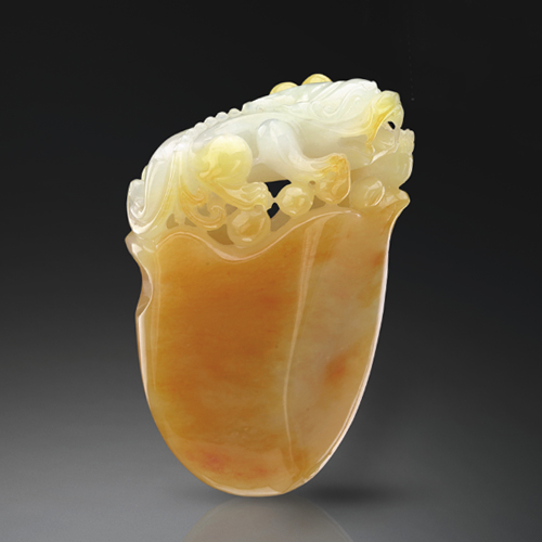 細膩晶瑩,種質(zhì)均勻,翡色過渡自然,雕琢細致精美。