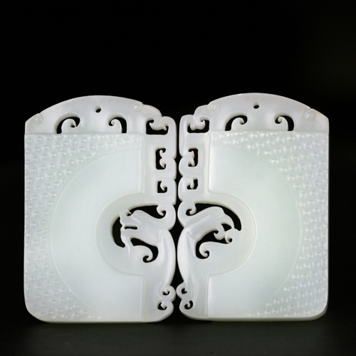 編號:RY42-396 材質:白玉•和田玉 / 規格:5cm×3.3cm×0.6cm / 重量:35.413g+35.527g